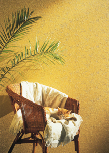 Überstreichbare Vliesprägetapete aus Zellstoff- und Textilfasern.