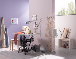 Überstreichbare Vliesprägetapete aus Zellstoff- und Textilfasern.